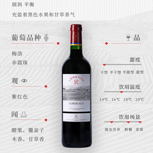 简约大气的瓶装风格,尽显气派的造型。圆润和饱满的酒香味道,充实又温和。拥有黑色水果和甘草气息,味道更清香。