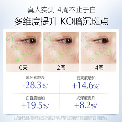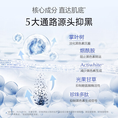 富含珍珠多肽精华复配光甘草定抗氧化,深层次阻拦黑色素,提亮肤色。经过国家食药监管总局的认证,敏感肌肤亦可放心使用。