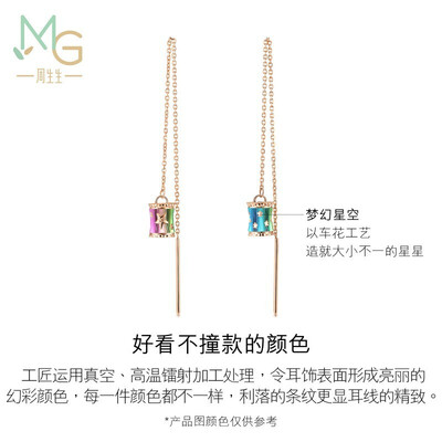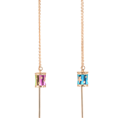 这款耳饰经过真空、高温镭射加工处理,表面带有幻彩颜色,个性时髦,不易撞款。配以大小各异的星星点缀,别致亮眼。