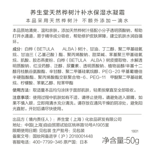 养生堂 桦树汁补水乳霜