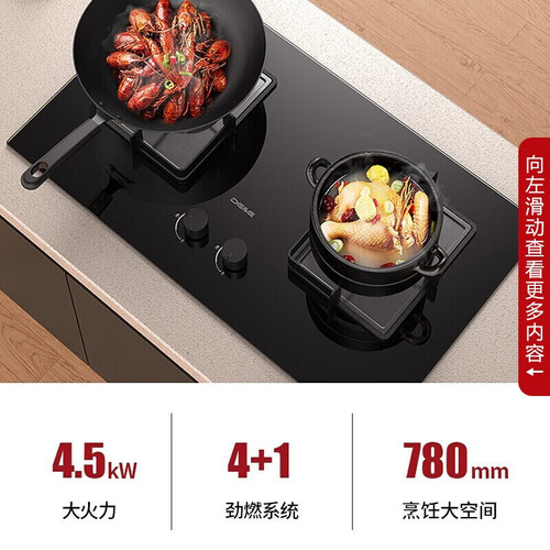 智能手势感应,隔空挥手就能开启烟机排烟模式,使用方便,且不脏手。燃气灶能产生4.5kW大火力,轻松炒熟食材。