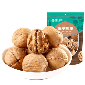 核桃的皮非常薄,果仁饱满,可以轻松把核桃的壳打开。外壳的色泽鲜润,从来没有经过深加工和漂白,老少咸宜。