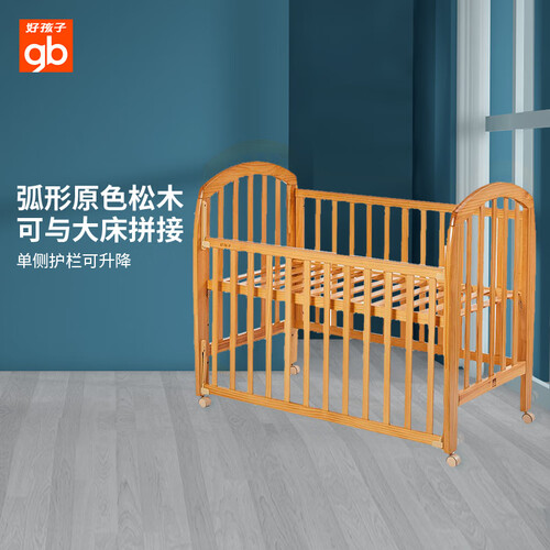 竖琴式床头造型,更加新颖。一侧护栏可升降,方便妈妈照顾宝宝。多种用法,陪伴成长。选用新西兰环保松木,品质出色。