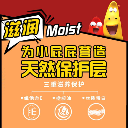 三层滋养保护,蕴含维他命E、橄榄油和丝质蛋白,帮助宝宝形成天然保护层。采用热风制作工艺,触感柔滑,亲肤透气。