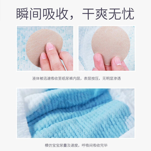 采用立体悬浮芯,增大了尿液吸收量,有利于保持内层的干爽环境。拥有三层防漏边,贴合腰部,能够有效减少侧漏的现象。