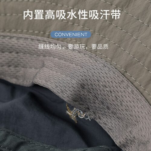 专为户外设计防晒帽,人性化的半帽檐设计,抬头转头自如。配以可拆卸面罩设计,可作防晒使用,全部放下遮阳面纱,可防晒、防虫。