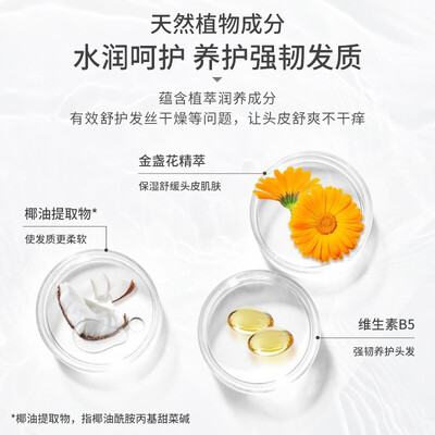 蕴含植萃滋养成分,有效修护发丝干燥等问题;添加椰油提取物,让发质更加柔软;搭配严苛工艺,不含色素杂质。