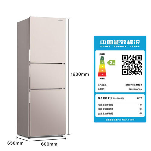 松下无霜净味三门冰箱