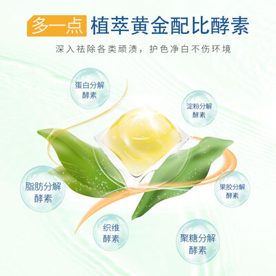 一颗洁净护衣,小身材大能量。此外它还添加5种黄金配比复合酵素,高倍浓缩,清洁衣物更省力。香气好闻,萦绕不散。