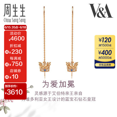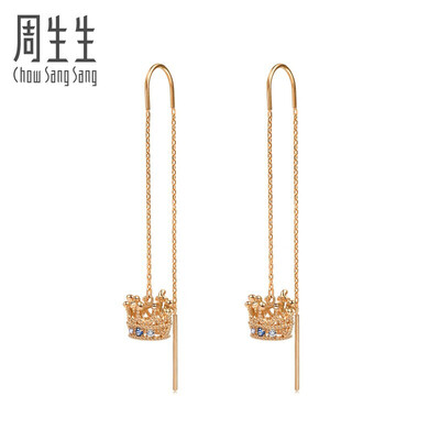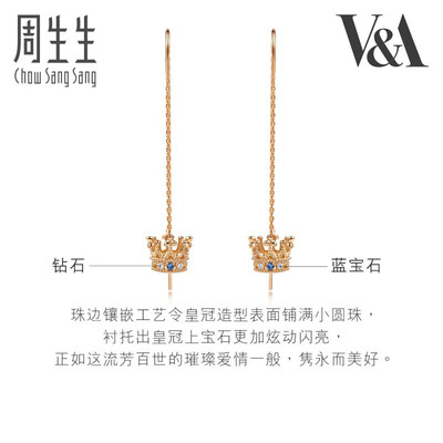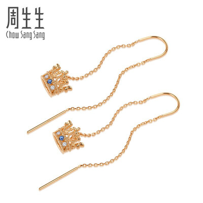 周生生 皇冠蓝宝石K金耳饰
