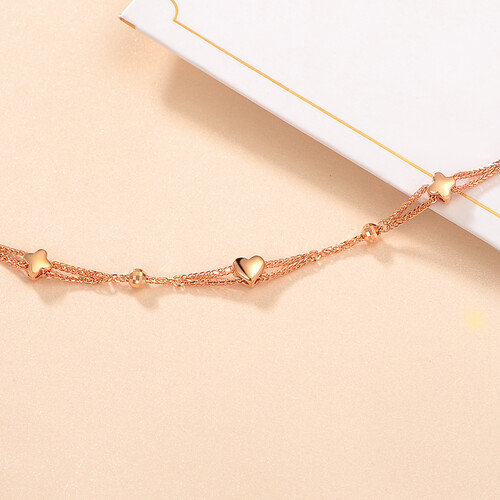 采用别致的双链条设计,让纤细的手链佩戴起来不仅个性时尚,而且还更加结实,中间串联了许多可爱的小桃心,十分惹人爱。