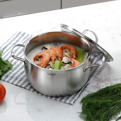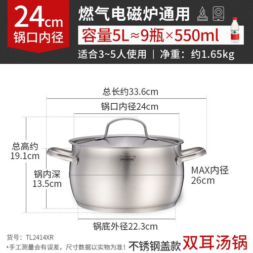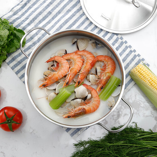 严选食品级304不锈钢材质,环保健康且抗腐防锈,耐高温。下沉式无气孔全钢锅盖,有效锁住原汁原味。