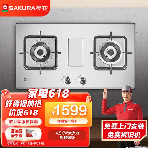 樱花 不锈钢台嵌两用燃气灶