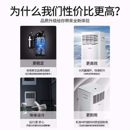 这款移动空调是免人工安装的设计,多种场合都能轻松使用,搭配大风量循环技术,快速制冷使清凉轻松送达。