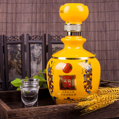 采用多种纯粮原料混合酿制而成,具有细密的酒泡;搭配闪耀的金色瓶身,带来富贵吉祥的美好寓意。
