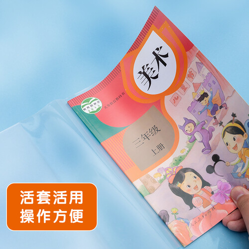 采用优质PP材质,特殊封口设计,可用清水清洗封面,三种尺寸可任意挑选,满足大部分书本尺寸,不易有气泡。