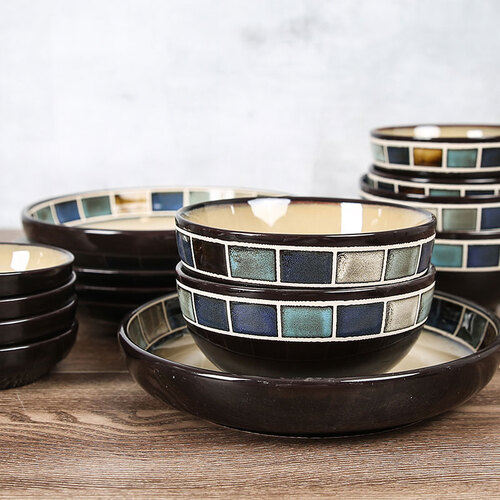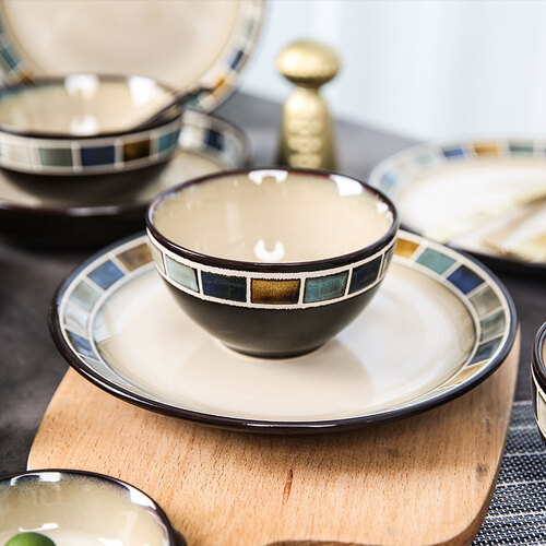 此款套装采用窑变釉工艺,色彩饱满丰富,具有复古美感,彰显您的品味;餐具坚固结实,不容易摔破,使用寿命更长。