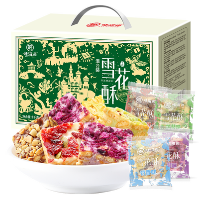 多种口感混合搭配,一口甜香一口酥松,尽享美味在舌尖绽放。结合1000克的手提包装,大分量可满足多人分享。