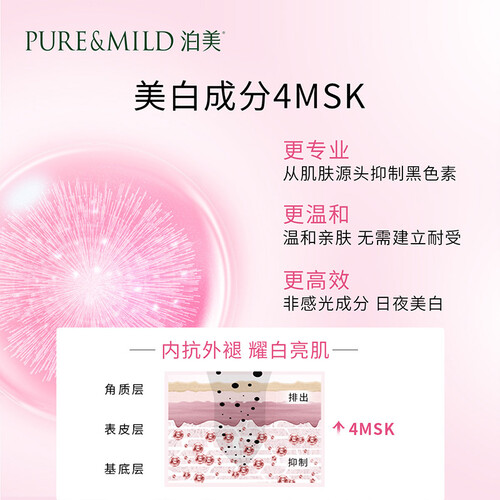 蕴含美白保湿成分,淡化黑色素,提亮肤色,增加肌肤的光泽度。轻盈水状质地,清爽不油腻,带给肌肤无负担的柔软触感。