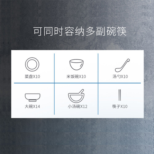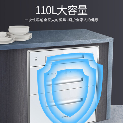 采用多重除菌技术,让细菌无处遁形,拒绝水分残留,让餐具时刻干爽不发霉。110L大容量,一次性可容纳全家人餐具。