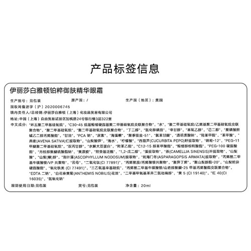 伊丽莎白雅顿 铂粹御肤眼霜