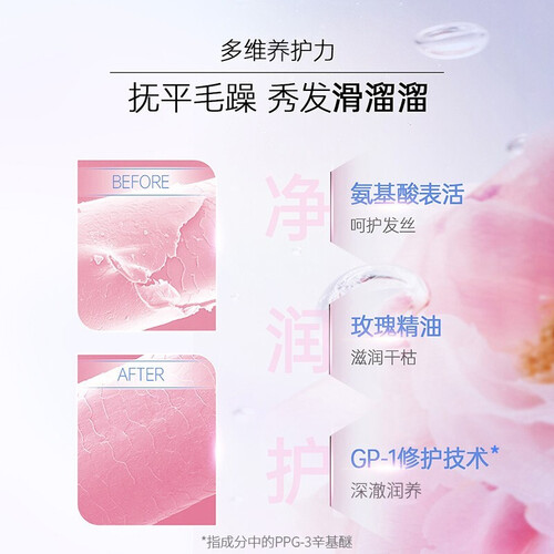 富含玫瑰精油,修复莹亮的发丝,并且持久留香。去屑因子,有效让头皮深层去油。