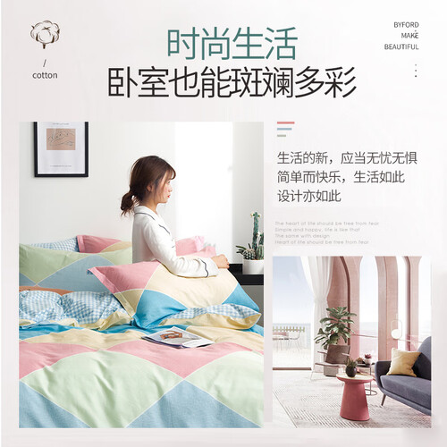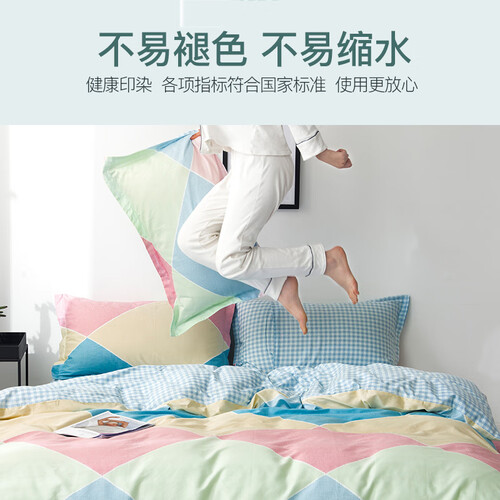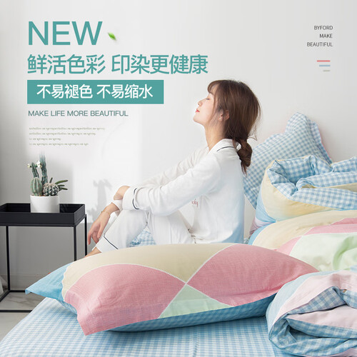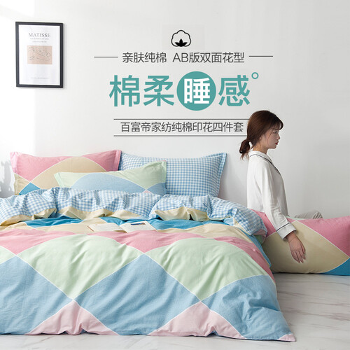 纯棉斜纹四件套绵柔细腻,良好的透气性,保持一整夜的干爽睡眠,舒适温润无刺激。环保印染,鲜活色彩、不易褪色、不易缩水。
