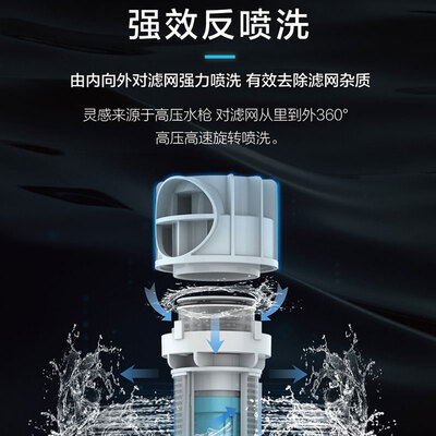 支持智能反喷洗,逆向清洗让杂质更容易脱落,不留卫生死角。内置双滤网系统,彻底去除水中的有害物质,让饮水更健康。