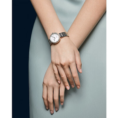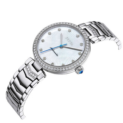 天然贝母盘精雕细琢,耀光纹曲线延展开来,自内而外散发魅力。12点刻度璀璨宝石,与表圈镶嵌相互辉映。