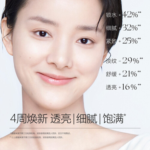 精粹奢华成分,为肌肤健康助力。同时平衡水油,四周焕新透亮细腻的肌肤,同时改善肌肤暗沉等问题。