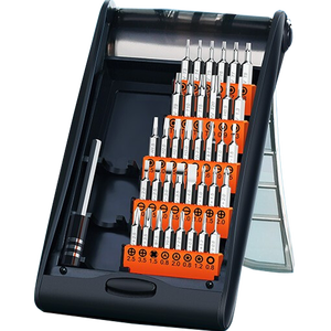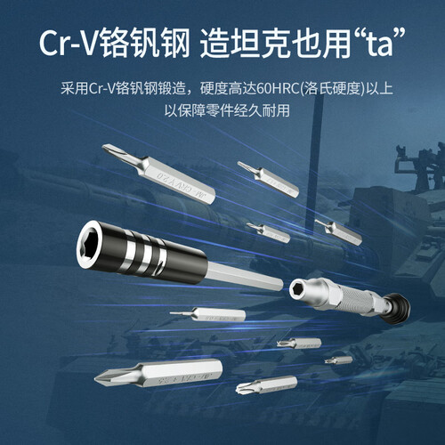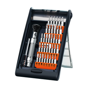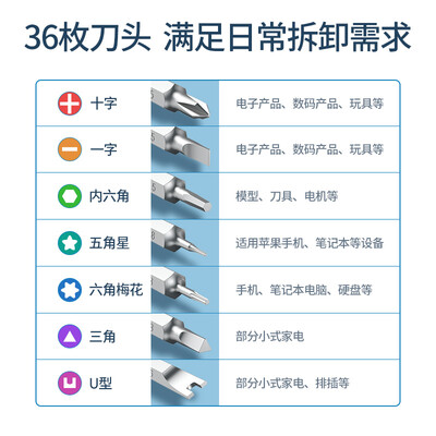 配备36枚刀头,从容应对日常拆卸;经过高温淬火工艺处理,耐用性大大提升;手柄滚花纹理设计,加大摩擦阻力,防止打滑。