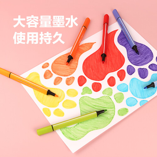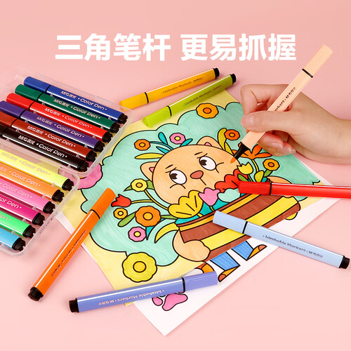 这款水彩笔采用了三角杆设计,抓握舒适,PP材质的包装盒,不易破损。