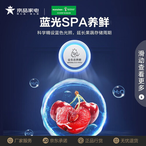 全空间四维净化技术,有效除菌抗菌、净化异味和乙烯,守护家人健康。支持蓝光SPA养鲜,延缓营养物质流失,保鲜时间更久。