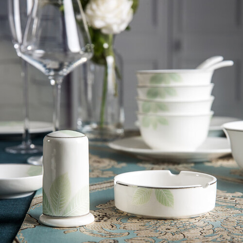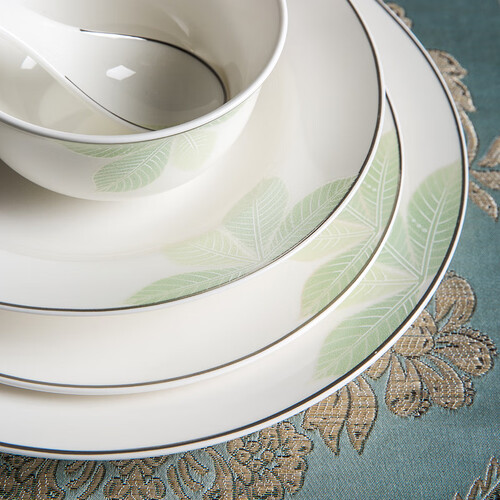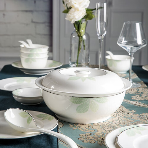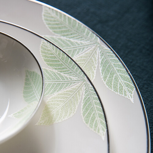 纯白釉面上分布着素雅图案,整体造型简约清新,不喧宾夺主,让人不自觉聚焦于美食本身,凸显食物之美。