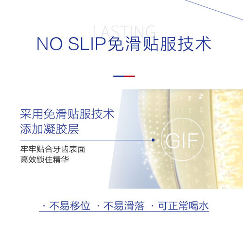 蕴含活性美白精华,能深入分解沉积色素,14天快速焕白,助女神塑约会素颜妆。更有免滑贴服技术,贴合牙齿不滑落,喝水都不掉。