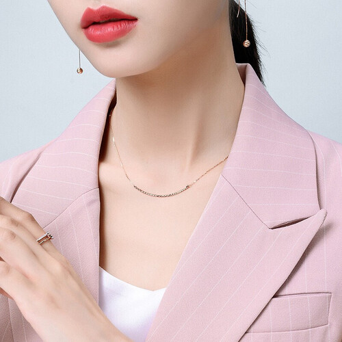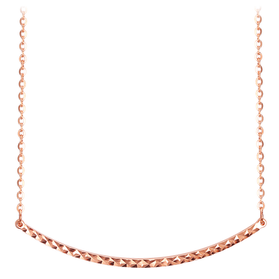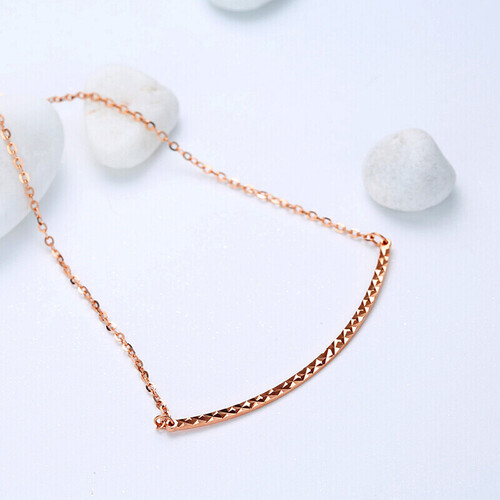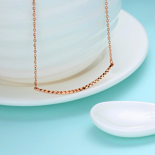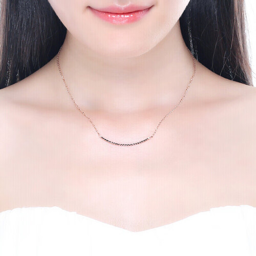 玫瑰金微笑吊坠设计,简洁大方,佩戴更凸显性感迷人锁骨。迷人的微笑弧度项链,修饰纤细的锁骨线条,增添女性柔美气质。