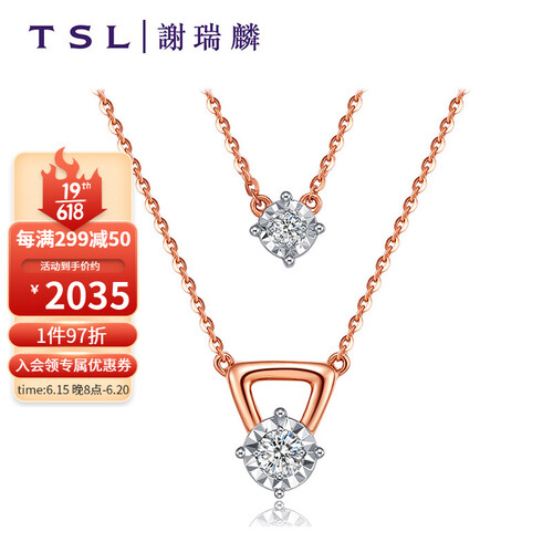 谢瑞麟 玫瑰金钻石K金项链