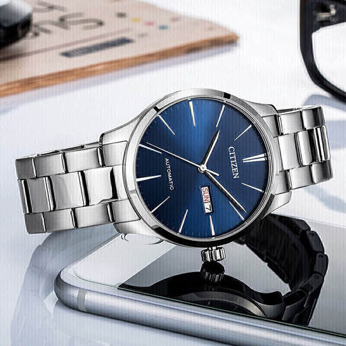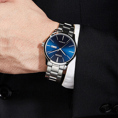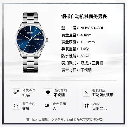银色的表带,充满了金属的质感,蓝色的表盘,充满梦幻的美感,防水的功能,凸显档次的高端。