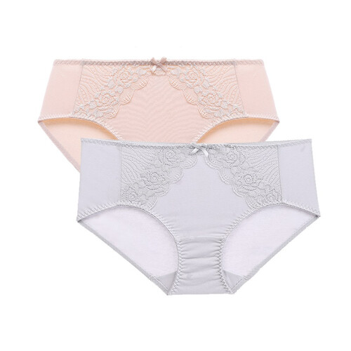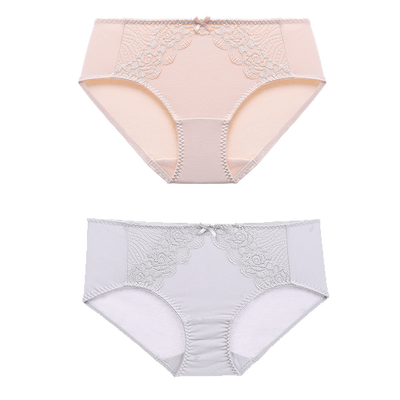 内裤的前侧拼接了立体的蕾丝刺绣,花卉图案雅致大气,细节更丰富;双层的棉质裆部吸汗性强,细腻呵护女士的身体。