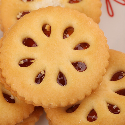 果汁由新鲜果汁熬制,香甜浓郁令人难忘。将果酱加入饼干,入口酥脆可口,好吃不粘牙。密封包装不受潮,携带方便。
