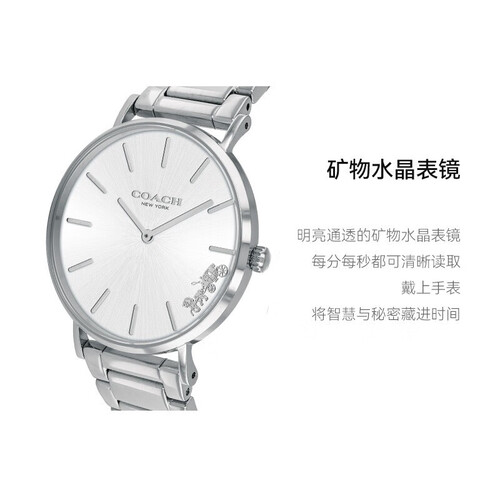 臻选矿物质水晶玻璃表镜,镜面光洁透亮,久戴不易磨损刮花。底盖镌刻品牌logo与腕表故事,低调简约,细节中呈现至臻品质。