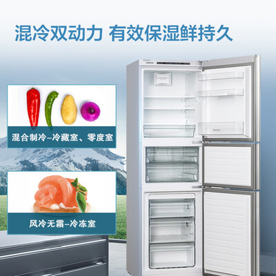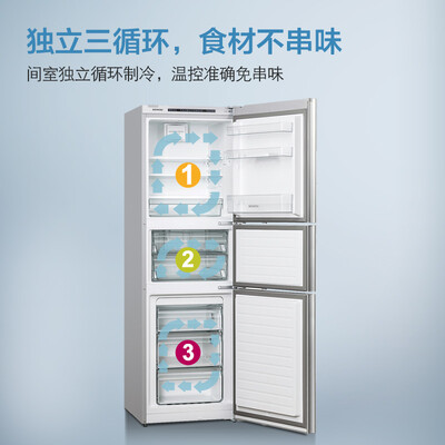冰箱采用风冷无霜技术,拥有出色的保鲜效果,可避免食材出现水分流失的情况。组合独立式三循环,让食物之间不串味。