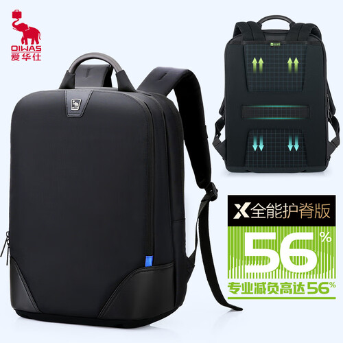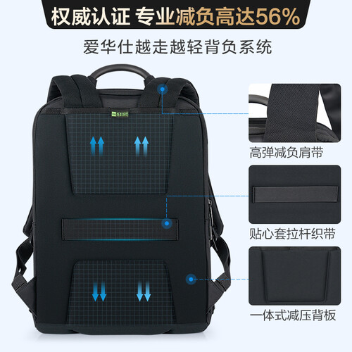 爱华仕 减负双肩黑色电脑包