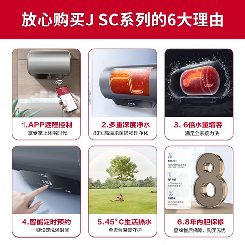 采用小巧机身设计,不会占据过多面积,是小户型的不二之选。结合其60L大容量设计,轻松满足全家沐浴需求。