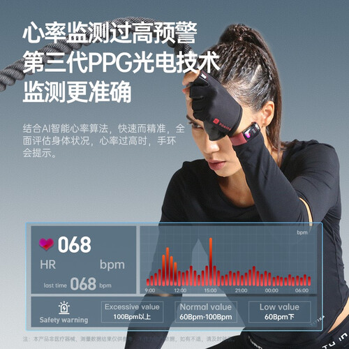 手环实时监测HRV,分析心脏跳动,及时了解心脏健康状况。1.14IPS彩屏设计,从此告别黑白屏,显示清晰,查看更轻松。