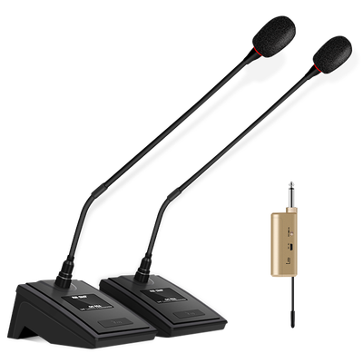 可智能调频,麦克风与接收器一对一配对,防止串频。采用音频电路构架,具有较强的动态追踪能力,不会跑音。