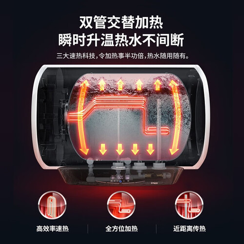 3000W速热技术,升温速度给力,缩短您的等待时间。十重安全防护,捍卫您的热浴安全,让家人沐浴不再心惊胆战。