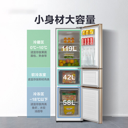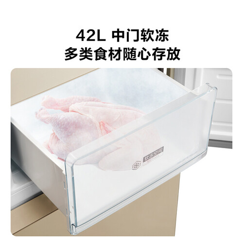 配备优质丝管蒸发器,可有效缩短结晶时间,实现快速冷冻。中门软冻设计,冷冻肉类食物更加方便,无需解冻即取即用。