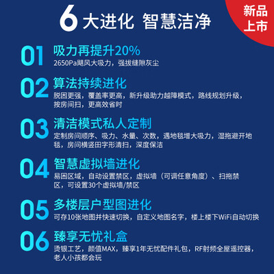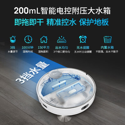 LDS激光雷达结合声波避障传感器设计,可快速定位和扫描家居环境,有效避免触碰家具;配置5200mAh大电池,持久续航。
