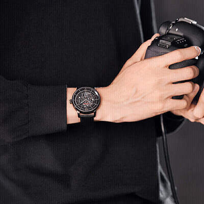 镜头形态表盘,具有鲜明的镜头感,捕捉时光流逝的美好画面。全镂空设计,展现机芯运转的魅力,满足机械情怀。